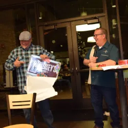 The club has a long tradition of giving and sharing with the community but tonight was sharing within the club. Everyone brings a gift and gets a gift in a random drawing. And all the while, Mr’s Zerby and Knotek are sharing the hours of downloading and memorizing perhaps the greatest collection of bad Christmas jokes since last year. The club member’s collective imagination was on display with gifts ranging from lights to tools to artwork to blankets to perhaps the largest chocolate bar in Cañon City!